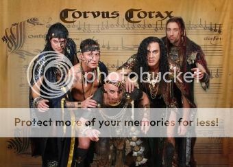 AlemaniaCorvus Corax es una banda alemana conocida por tocar música neomedieval usando una gran variedad de instrumentos autóctonos. Su nombre deriva del latín de cuervo común. La banda fue formada en 1989 por Castus Rabensang, Wim (Venustus) y Meister Selbfried. Normalmente usan gaitas como instrumento principal y sus presentaciones en vivo están caracterizadas por los extravagantes vestuarios de los músicos, que recuerdan a los de los mitos griegos: con el torso descubierto y adornados con accesorios primitivos.